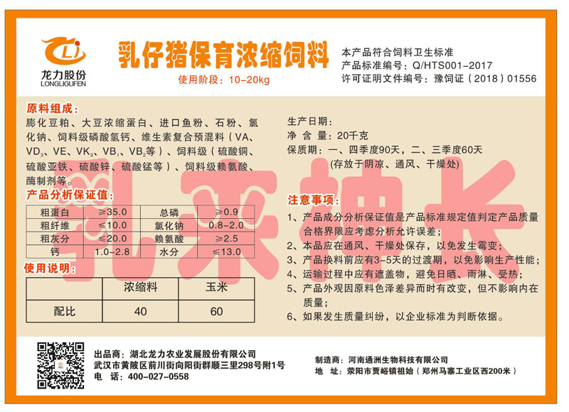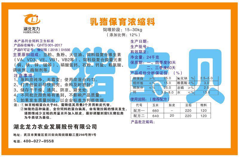 湖北龍力農(nóng)業(yè)發(fā)展股份有限公司坐落于武漢市黃陂區(qū)前川街向陽街群順三里298號(hào)附1號(hào)。公司成立于2014年6月,公司自成立以來把“創(chuàng)全球最大養(yǎng)豬綜合服務(wù)”為企業(yè)愿景。致力于打造教保料品牌”作為公司發(fā)展的明確目標(biāo)。公司一直致力于豬營(yíng)養(yǎng)的研究和開發(fā),積極與國(guó)內(nèi)外高校和科研機(jī)構(gòu)合作,推廣養(yǎng)豬技術(shù)、動(dòng)物營(yíng)養(yǎng)新概念,向世界農(nóng)牧企業(yè)學(xué)習(xí)與合作。公司采用國(guó)內(nèi)先進(jìn)的生產(chǎn)工藝,選擇高精度電子配料秤,高均勻度、無殘留混合機(jī)等先進(jìn)設(shè)備....